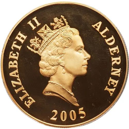 | Obverse lettering | ELIZABETH II ALDERNEY RDM 2005 |