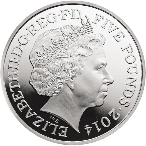 | Obverse lettering | ELIZABETH·II·D·G·REG·F·D FIVE POUNDS·2014 IRB (Translation: Elizabeth the Second by the Grace of God Queen Defender of the Faith) |