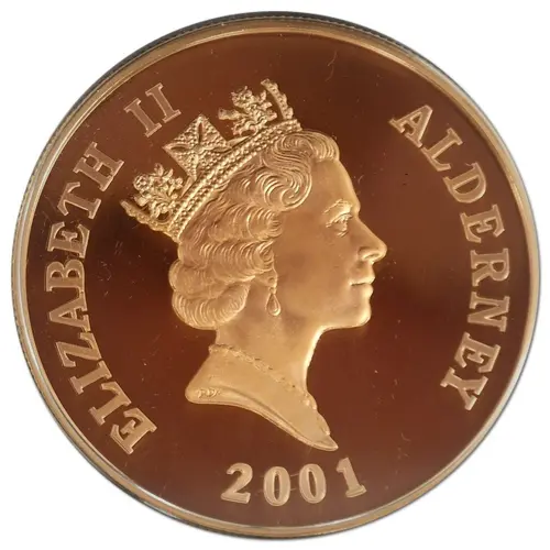 | Obverse lettering | ELIZABETH II ALDERNEY RDM 2001 |