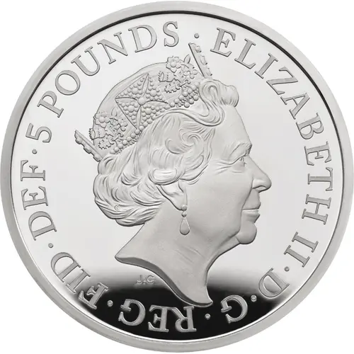 | Obverse lettering | ELIZABETH II·D·G·REG·FID·DEF·5 POUNDS· J.C (Translation: Elizabeth the Second by the Grace of God Queen Defender of the Faith) |