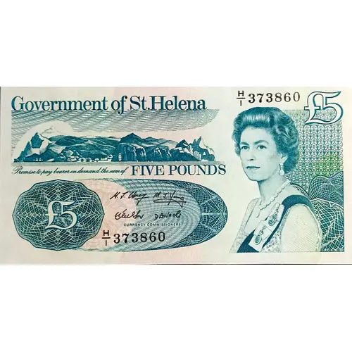 | Obverse lettering | Government of St. Helena £5 Promise to pay bearer on demand the sum of FIVE POUNDS £5 CURRENCY COMMISSIONERS |