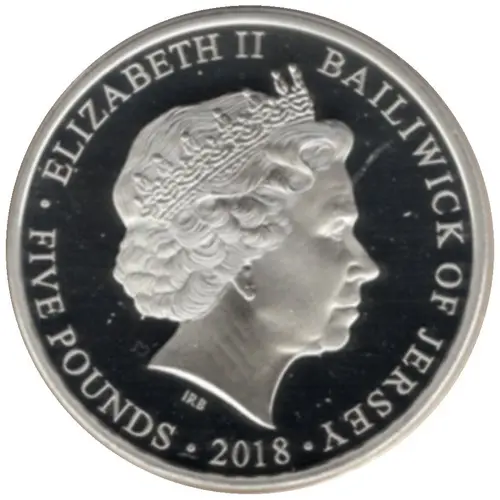 | Obverse lettering | ELIZABETH II BAILIWICK OF JERSEY 2018 FIVE POUNDS |