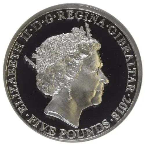 | Obverse lettering | ELIZABETH II · D · G · REGINA · GIBRALTAR · 2018 · FIVE POUNDS · |
