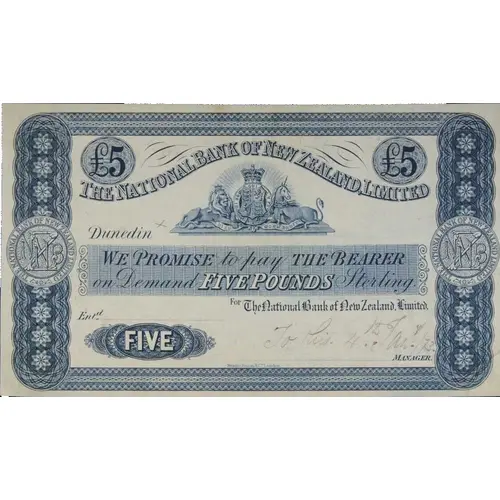 ₤5 ₤5 THE NATIONAL BANK OF NEW ZEALAND LIMITED. DUNEDIN WE PROMISE TO PAY THE BEARER ON DEMAND FIVE POUNDS STERLING FOR THE NATIONAL BANK OF NEW ZEALAND LIMITED FIVE |