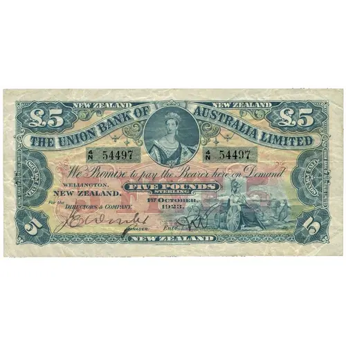 NEW ZEALAND NEW ZEALAND THE UNION BANK OF AUSTRALIA LIMITED WE PROMISE TO PAY THE BEARER HERE ON DEMAND FIVE POUNDS STERLING WELLINGTON, NEW ZEALAND NEW ZEALAND |