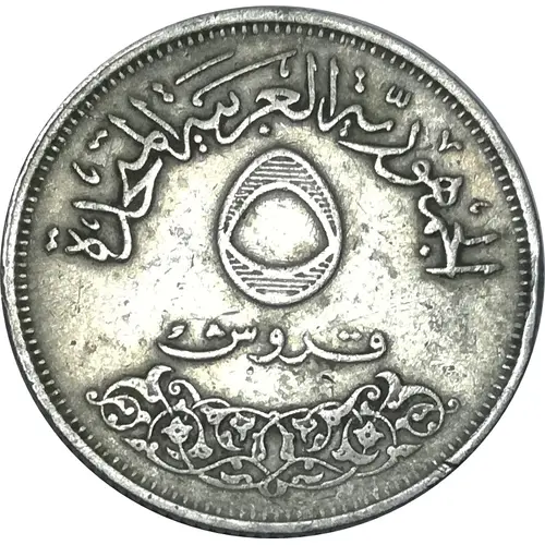 | 正面铭文 | الجمهوية العربية المتحدة ٥ قروش (Translation: United Arab Republic 5 Qirsh) |
