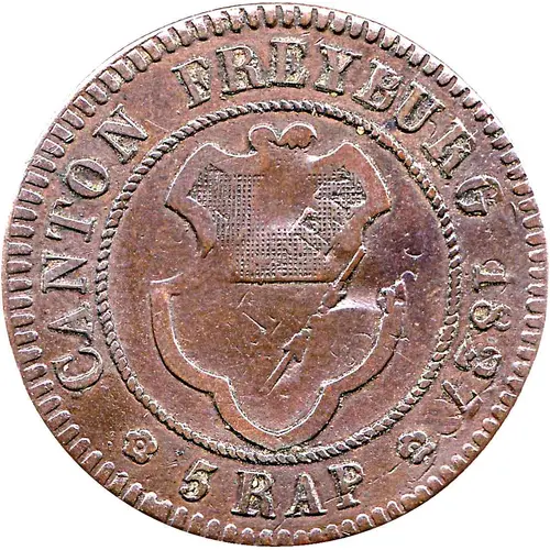 | Obverse lettering | CANTON FREYBURG 1827 5 RAP |