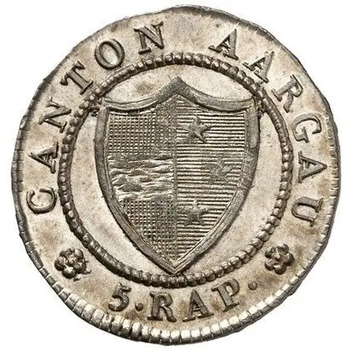 | Obverse lettering | CANTON AARGAU 5 RAP |