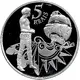 | Reverse description | Moment of discovery, observed from the newly discovered land. The composition of two plans presented in the first, the figure of an Indian, and the second ship of the expedition of Pedro Álvares Cabral heading into the new land. Linking the elements of the scene, an Indian feather adornment and a compass rose. |