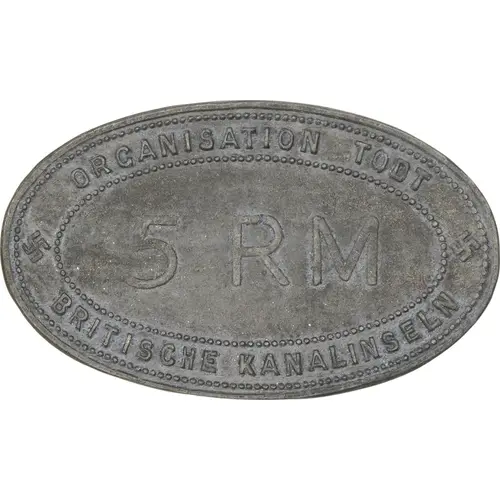 | Obverse lettering | ORGANISATION TODT 5 RM BRITISCHE KANALINSELN |