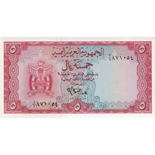 | Reverse lettering | ARAB REPUBLIC OF YEMEN 5 FIVE RIALS |