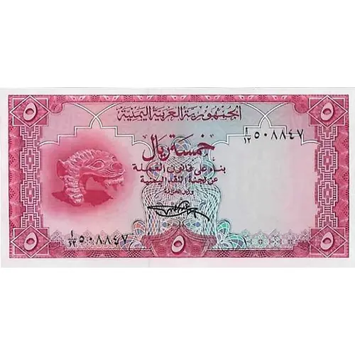 Leyenda del reverso ARAB REPUBLIC OF YEMEN FIVE RIALS