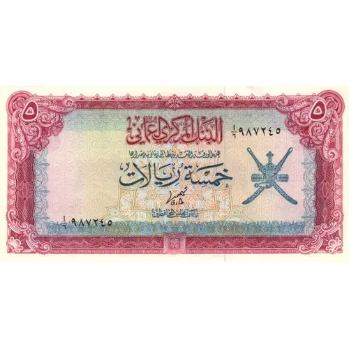 | Reverse lettering | CENTRAL BANK OF OMAN FIVE RIALS |
