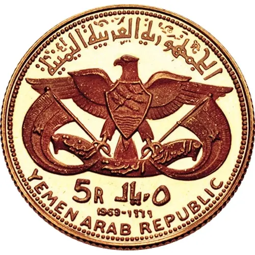 | Obverse lettering | الجمهورية العربية اليمنية الجمهورية العربية اليمنية 5 R ٥ ﷼ 1969 - ١٩٦٩ YEMEN ARAB REPUBLIC |