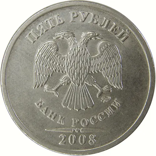 | Obverse lettering | ПЯТЬ РУБЛЕЙ ММД БАНК РОССИИ 2008 (Translation: Five Roubles MMD Bank of Russia) |