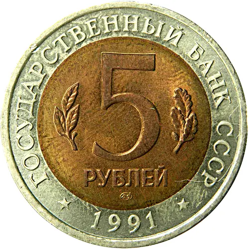 | Ön yüz lejandı | ГОСУДАРСТВЕННЫЙ БАНК СССР 5 РУБЛЕЙ ЛМД 1991 (Translation: Government Bank of the USSR 5 Roubles LMD) |