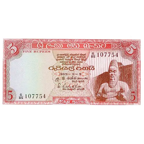 | Obverse lettering | 5 FIVE RUPEES 1965 - 9 - 9 |