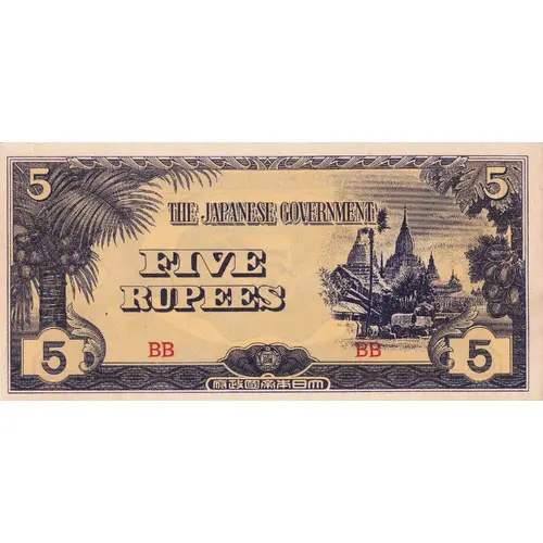 | Obverse lettering | THE JAPANESE GOVERNMENT FIVE RUPEES |