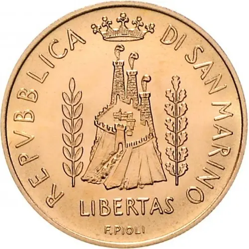 | Obverse lettering | REPUBBLICA DI SAN MARINO LIBERTAS F.PIOLI |