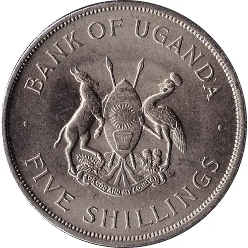 Légende de l’avers · BANK OF UGANDA · FOR GOD AND MY COUNTRY FIVE SHILLINGS