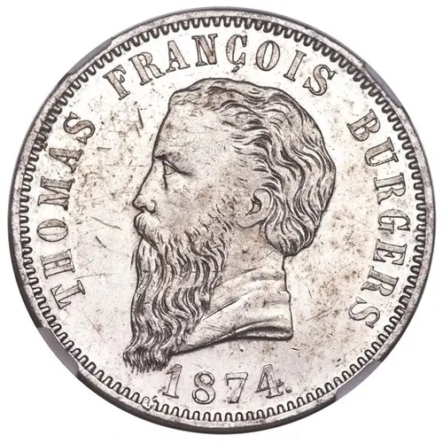 | Obverse lettering | THOMAS FRANÇOIS BURGERS 1874. |