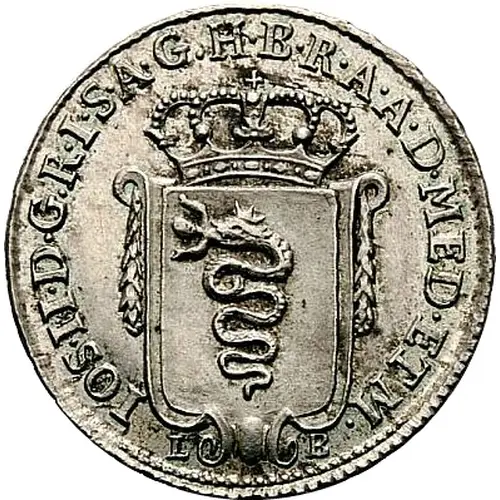 | Description de l’avers | Crowned shield of Milan snake arms, ornamented with garlands at sides. |