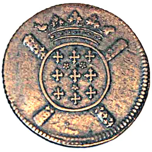 Obverse description Crowned circular shield, crossed sceptres behind
