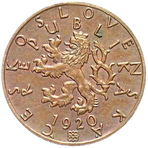 Artistry: Designed by the renowned Czech sculptor Otakar Španiel, the 5 Stotin showcases a nationalistic yet refined artistic style. The obverse features the Bohemian lion rampant, crowned and bearing the Slovak double cross on its shield, symbolizing the union of Czech and Slovak lands. The reverse displays the denomination "5 STOTIN" within a wreath of lime leaves, the national tree, with the year "1920" below, blending classical composition with potent national symbolism.