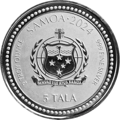 | Obverse lettering | SAMOA·2024 2 TROY OUNCE 999 FINE SILVER FA`AVAE I LE ATUA SAMOA 5 TALA (Translation: God be the Foundation of Samoa) |