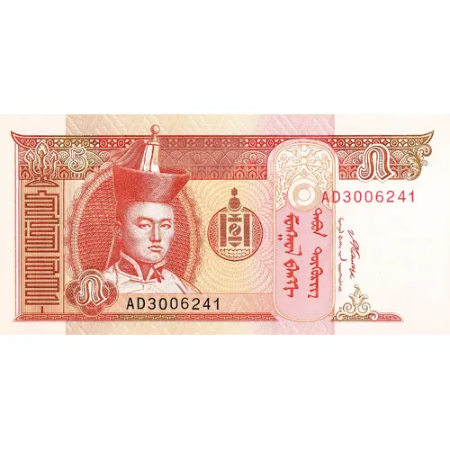 | توضیحات روی اسکناس | Portrait of Damdiny Sühbaatar (Feb 2, 1893 – Feb 20, 1923) was a founding member of the Mongolian People`s Party and leader of the Mongolian partisan army that liberated Khüree during the Outer Mongolian Revolution of 1921, a Paiza (Gerege) – a tablet of authority for the Mongol officials and envoys, which enabled the Mongol nobles and official to demand goods and services from the civilian population, and National Coat of Arms |