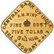 | Reverse lettering | THE CENTRAL BANK OF INDIA LTD. H.M.MINT FINE 995.7 FIVE TOLAS BOMBAY |