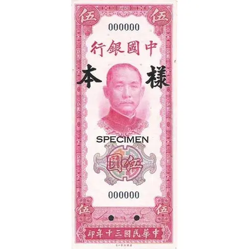 | Reverse lettering | Bank Of China Five Yuan 1941 |
