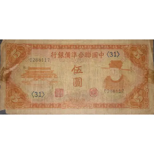 | Obverse description | Orange on multicolor underprint. Temple at left. Yüeh Fei at right |