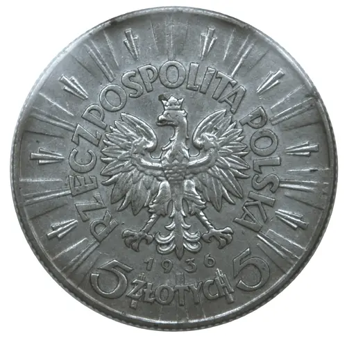| Opschrift voorzijde | RZECZPOSPOLITA POLSKA 1936 5 ZŁOTYCH 5 (Translation: Republic of Poland 1936 5 Złotych 5) |