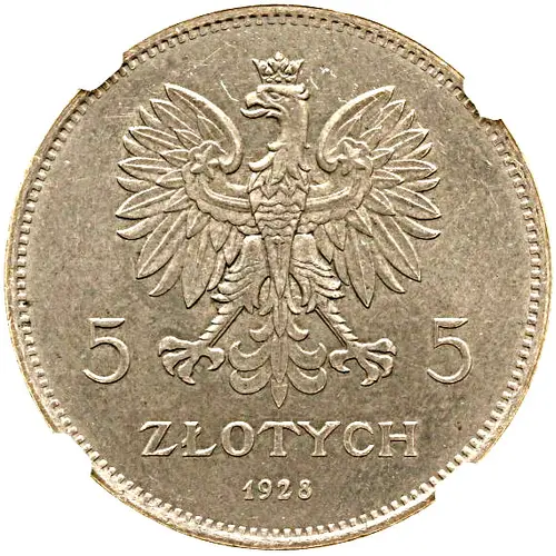 | Leyenda del anverso | 5 5 ZŁOTYCH 1928 |