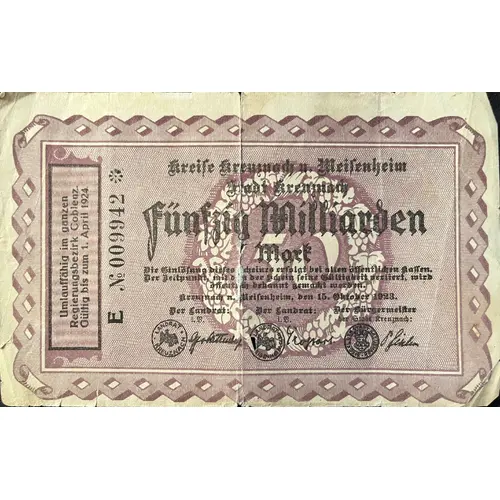 | Emittente | Kreuznach, Meisenheim Districts and City of Kreuznach (Prussian province of Rhine) |