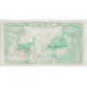 Print in light green. Numbered value in the upper left corner. On the left, a pair of deer and cherry blossom branches; on the right, a temple and pine trees. |