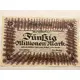 FÜNFZIG MILLIONEN MARK Wer Gutscheine nachmacht oder verfälscht oder nachgemachte oder verfalschte Sich verschafft und in Derlehr bringt,wird mit Zuchthaus nicht unter zwei Jahren bestraft.50 Millionen(2) |