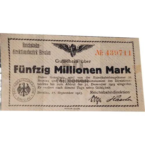 50 000 000 Mark Reichsbahndirektion