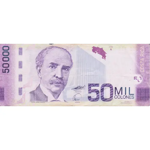 | Obverse lettering | 50 MIL COLONES COSTA RICA (Translation: 50 Thousand Colones Costa Rica) |