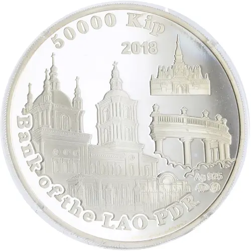 | Obverse lettering | 50000 Kip 2018 Bank of the LAO PDR Ag 925 ММД (Translation: MMD) |