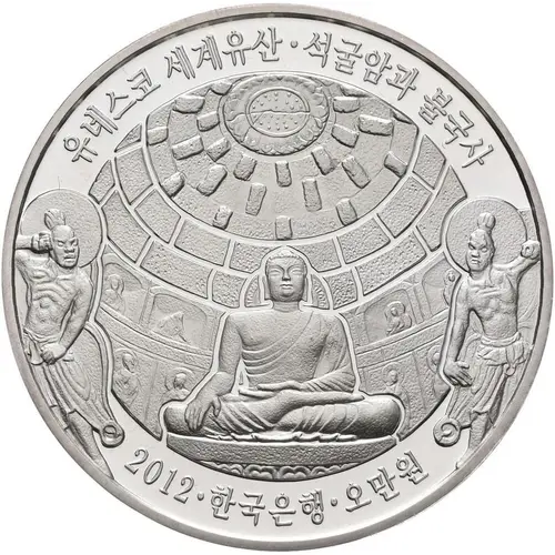 | نوشتههای پشت سکه | UNESCO WORLD HERITAGE Seokguram Grotto and Bulguksa Temple 2012 THE BANK OF KOREA 50000 WON |