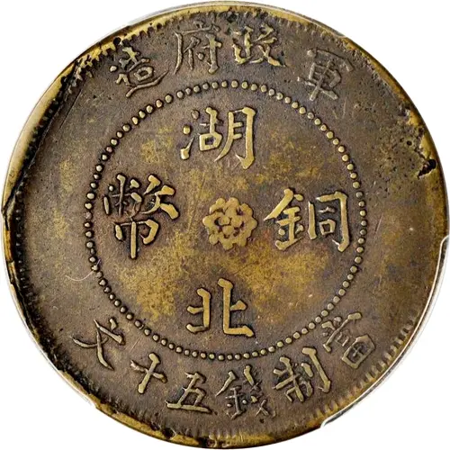 造府政軍 湖 幣銅 北 文十五錢制當 (Translation: Made by the Military government Hupeh / Copper coin Worth 50 Cash currency) |