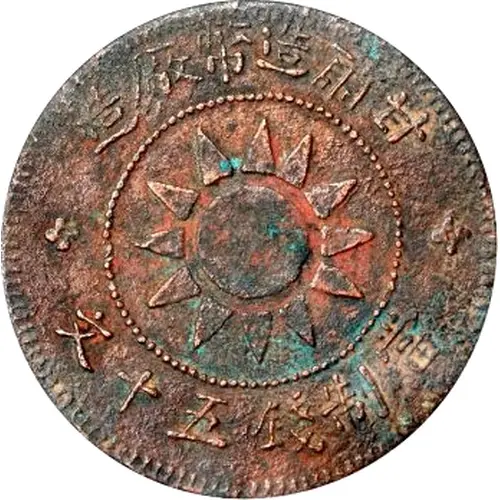 Obverse description Star with twelve rays surrounded by Chinese ideograms.