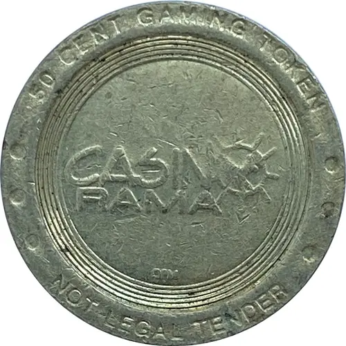 | Obverse lettering | 50 CENT GAMING TOKEN CASINO RAMA OPM NOT LEGAL TENDER |