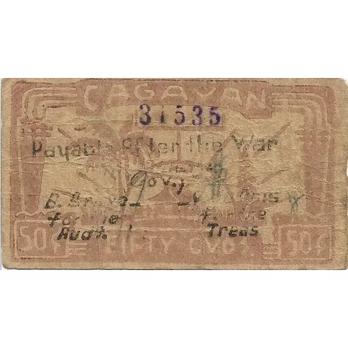| 表面の銘文 | CAGAYAN PAYABLE AFTER THE WAR FIFTY CVOS 50 ¢ |