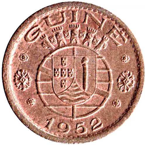 Artistry: While the specific engraver remains uncredited, the coin’s design adheres to the functional and conservative aesthetic prevalent in Portuguese numismatics of the mid-20th century. This stylistic school prioritized clarity and national symbolism over elaborate ornamentation. The obverse typically features the national shield, a ubiquitous emblem of Portuguese authority, while the reverse clearly states the denomination, year, and the colonial issuer, "GUINÉ PORTUGUESA," in a straightforward, legible manner, characteristic of colonial issues intended for widespread circulation.