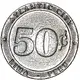 | Opis rewersu | Embossed ring round the border. In the ring, upper semicircle containing the name, in low relief, ATLANTIC CITY. In the ring, lower semicircular containing the names, in low relief, LIMA - PERU. In the ring, on the left and right sides, in low relief, one on each side, five pointed star. In the center in high relief, the value 50ȼ. |