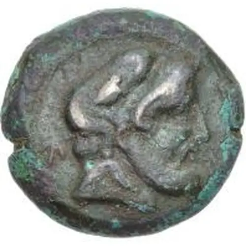 | Obverse description | Bearded Nethuns wearing pistrix-skin headdress facing right with value behind. |
