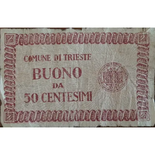 | Obverse lettering | COMUNE DI TRIESTE BUONO DA 50 CENTESIMI (Translation: Municipality of Trieste Voucher for 50 centimes) |
